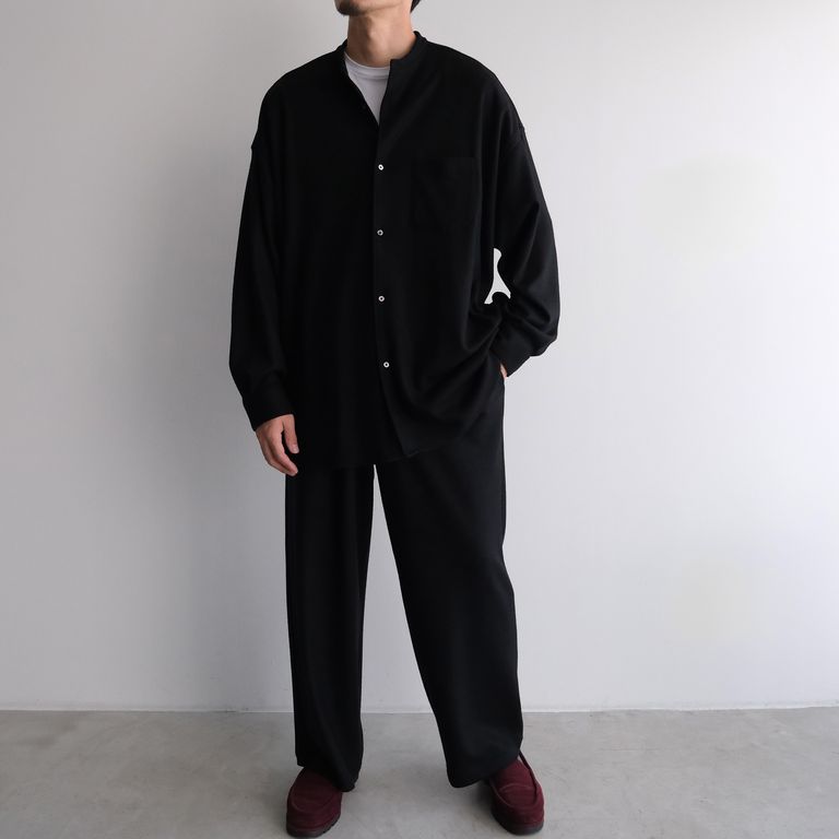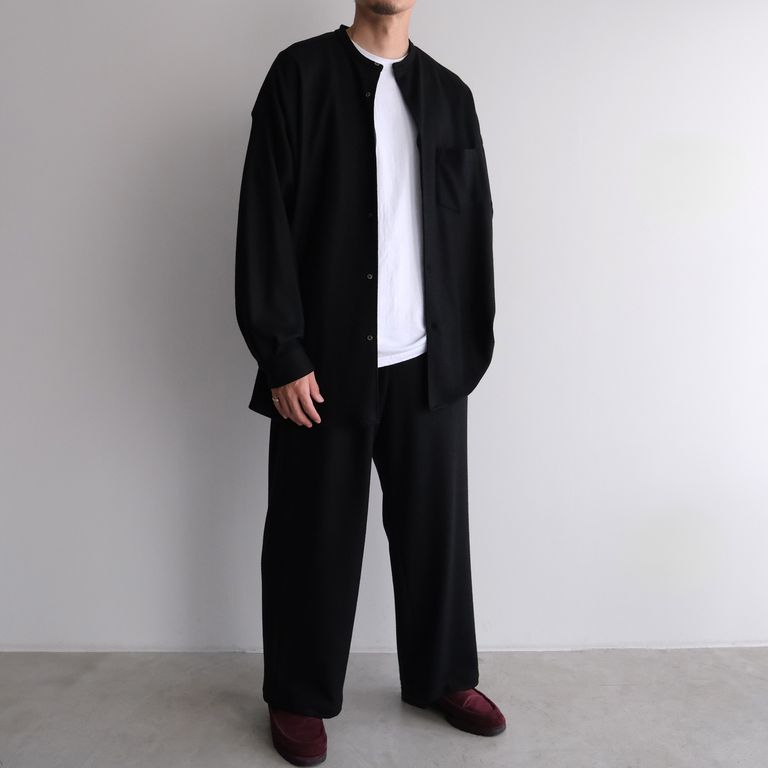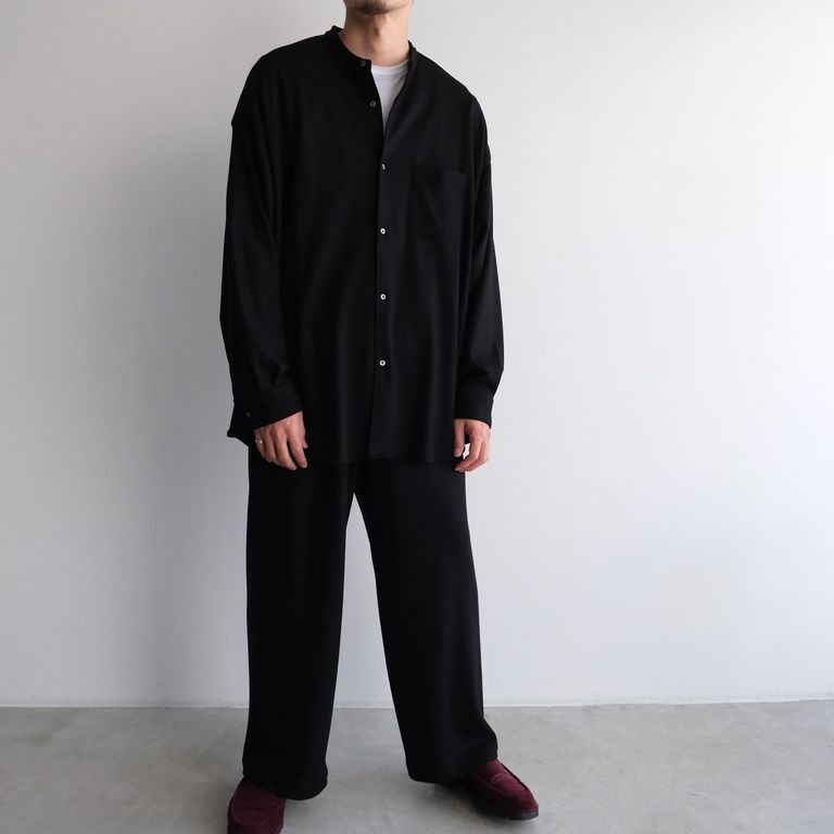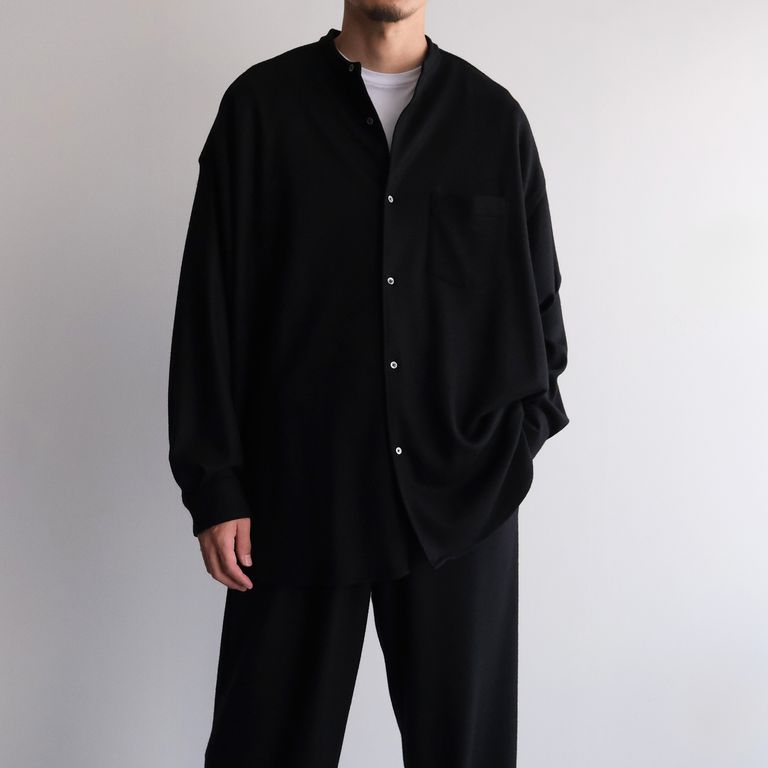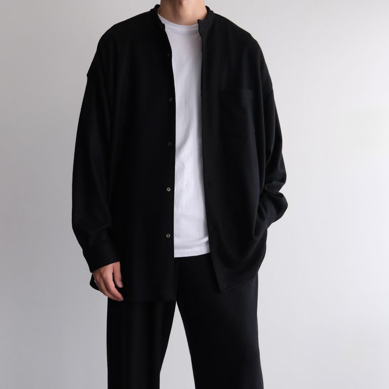 Wool Smooth Flannel Oversized Band Collar Shirt -オーバーサイズシャツ-(Black / ブラック)GU253-50222B