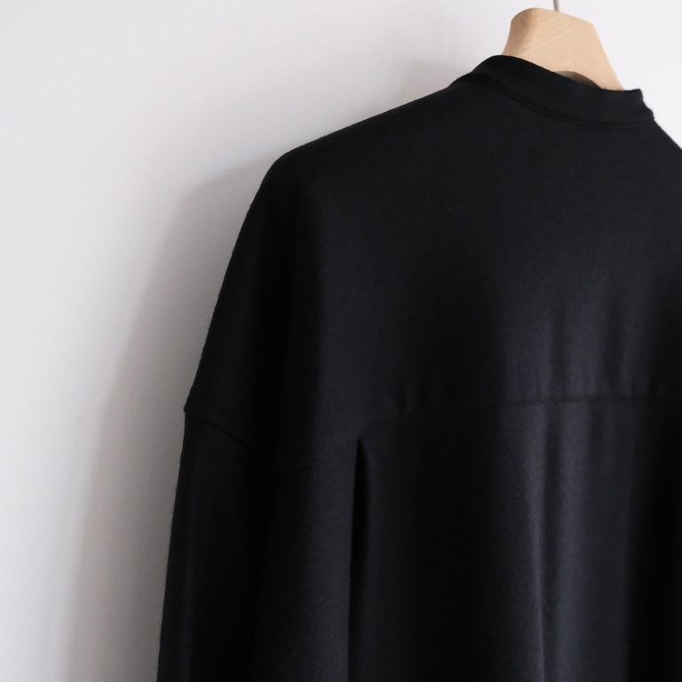 Wool Smooth Flannel Oversized Band Collar Shirt -シャツ-(Black / ブラック)