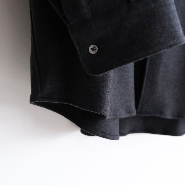 Wool Smooth Flannel Oversized Band Collar Shirt -シャツ-(Gray / グレー)