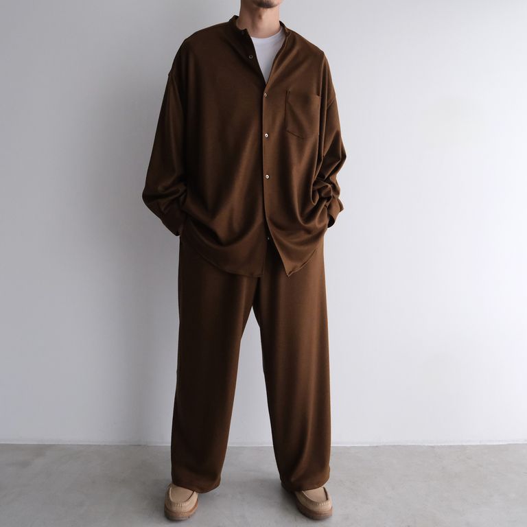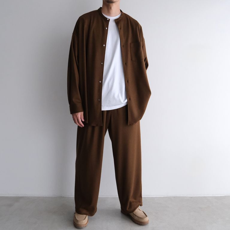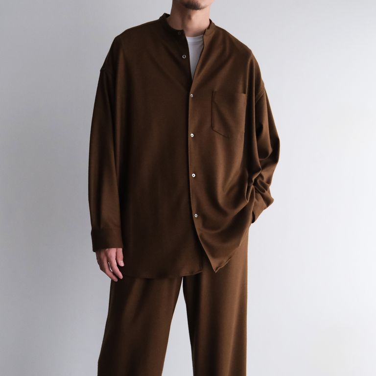 Wool Smooth Flannel Oversized Band Collar Shirt -オーバーサイズシャツ-(Brown / ブラウン)GU253-50222B