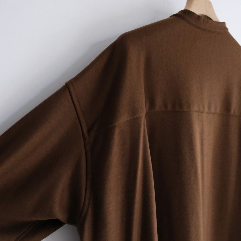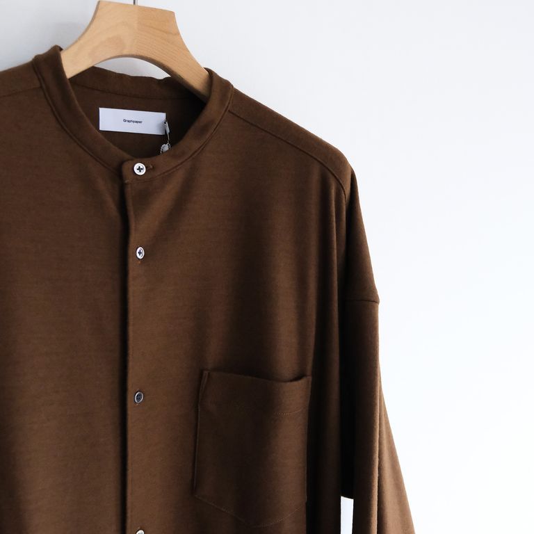 Wool Smooth Flannel Oversized Band Collar Shirt -シャツ-(Brown / ブラウン)