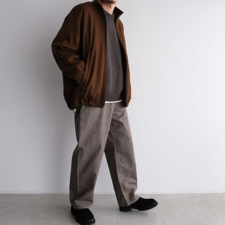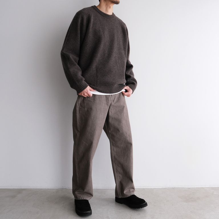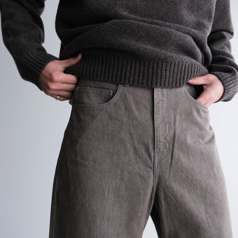 シンプルな5ポケットのデニムをベースとしながらも、バギーシルエット仕上げることで、一見ワークウエアのような雰囲気を感じさせつつも、腰回りのすっきりとしたカジュアルでありながら上品でクリーンなイメージも併せ持っています。