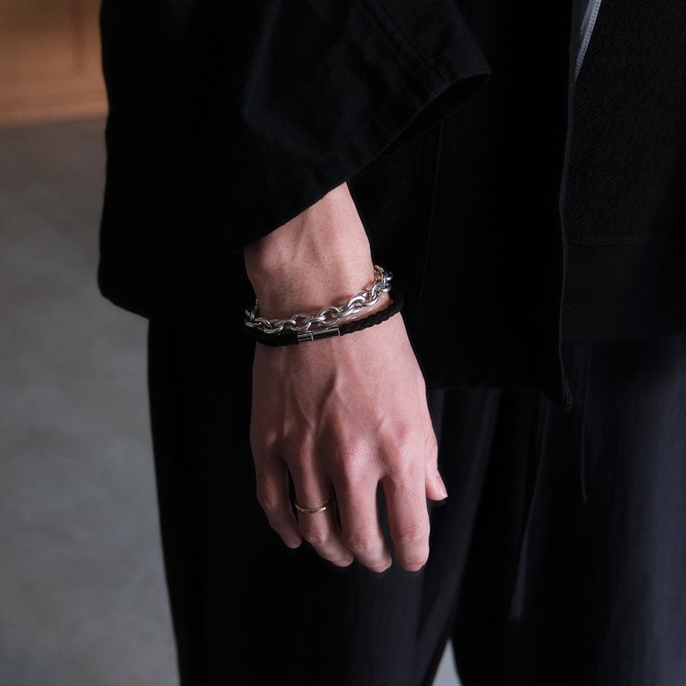 新入荷 DAYDATE Hand Woven Bracelet M -ブレスレット-(Black / ブラック) ¥13,200 税込 120 ポイント還元 発送目安日:1–2営業日 15,000円(税込)以上お買い上げで 送料無料 注文 サイズ(採寸)情報 質問する お気に入り コーディネートをリクエストする お電話でもご注文いただけます!お電話の際は 商品番号:179024963 をお知らせください。 電話をかける 0749-47-6585 サイズ 幅 手首周り M 0.5 21.5 単位:cm 商品説明 職人による手編みの表情とヌバックの質感、シンプルな金具による洗練されたブレスレット。ヌバックが持つしっとりとした質感と、職人の手によって丁寧に編み上げられた表情は温かみと品のある表情を感じることができます。絶妙な編み地の目の細かさとボリューム感によって、着用時の主張が強すぎなず、どんなスタイルにも馴染みやすく重ね付けにも適しています。使用されている留め具には、プラグのように差し込みことで装着ができるシンプルなデザインのものを採用。それによってブレスレット全体をぐっと締めてくれる良い雰囲気に仕上がっています。※こちらはサイズ:Mとなります。比較的メンズの方向けたサイズとなります。 詳細情報 カラー Black / ブラック 素材 Nubuck Leather / ヌバック レザー ブランド DAYDATE 品番 DD26SS-009-10 カテゴリ アクセサリー・ジュエリー > ブレスレット・バングル・リストバンド 性別 ユニセックス 返品 不可 ラッピング 可能 発送目安日 1–2営業日 配送方法 佐川急便(送料について) お支払い方法 本商品でご利用可能な決済方法は下記となります。各お支払い方法についての詳細はショッピングガイドをご覧ください クレジットカード 銀行振込 ※お振込の際の手数料はお客様負担となりますのでご了承くださいませ。※ご注文から金融機関の3営業日以内にご入金頂けない場合はキャンセルとさせていただく場合もございますのでご了承ください。お振込の期日がお客様の諸事情により遅れます場合はご連絡ください。※土日祝日にご入金手続きをされた場合は翌平日のご入金確認後の発送となります。 代金引換 配達時に現金で決済が可能な代金引換サービス。ご予約、お取り寄せでのご注文ではご利用いただけません。 あと払い (ペイディ) 翌月27日払い (コンビニ / 銀行) 事前登録不要、クレジットカード登録不要。 メールアドレスと携帯電話番号だけで、今すぐ購入可能。 お支払いは翌月27日までに、コンビニ払い・銀行振込・口座振替で。 1か月に何度購入しても、お支払いは翌月まとめて1回でOK。 さらに、ペイディアプリから本人確認をすると、分割手数料無料*の3回あと払い**、ご利用可能額の確認、使い過ぎを防止する予算設定など、便利な機能がご利用いただけます。 *口座振替・銀行振込のみ無料 **1回のご利用金額が3,000円以上の場合のみ利用可能 楽天ペイ サイズ(採寸)情報 サイズ 幅 手首周り M 0.5 21.5 単位:cm このアイテムをシェア この商品について質問する