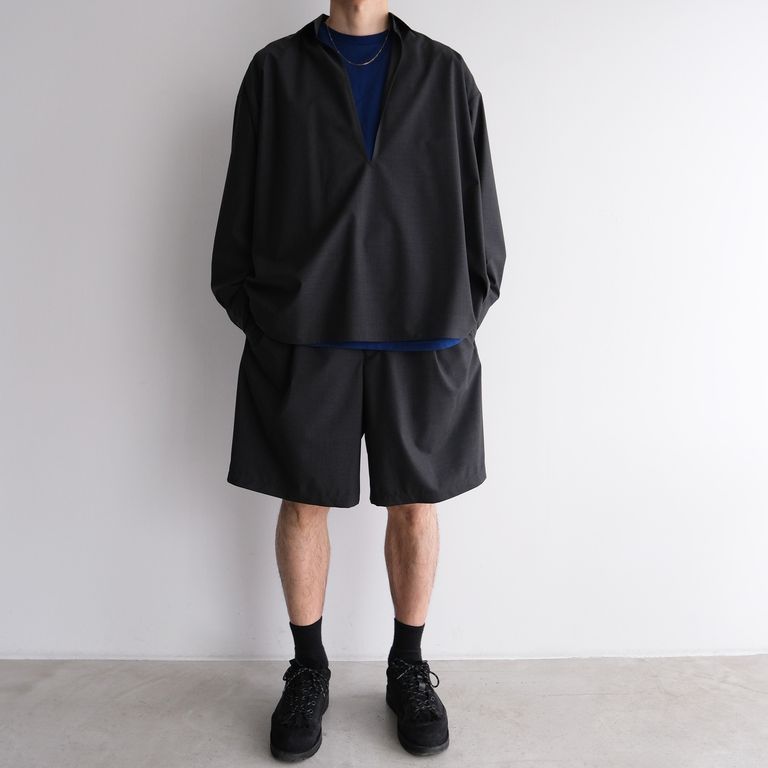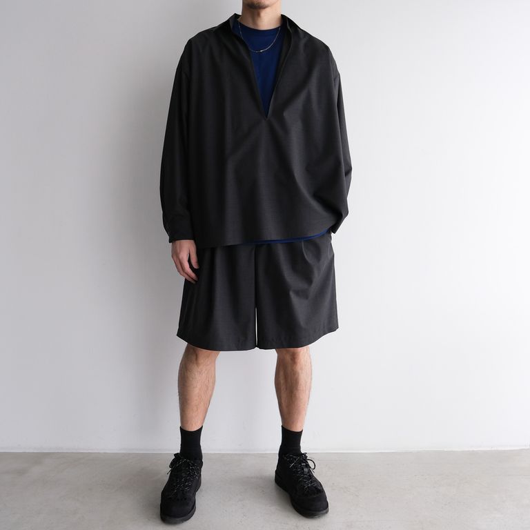 Fine Wool Heather Drawstring Track Shorts -ショーツ-(Charcoal / チャコール)GM261-40323