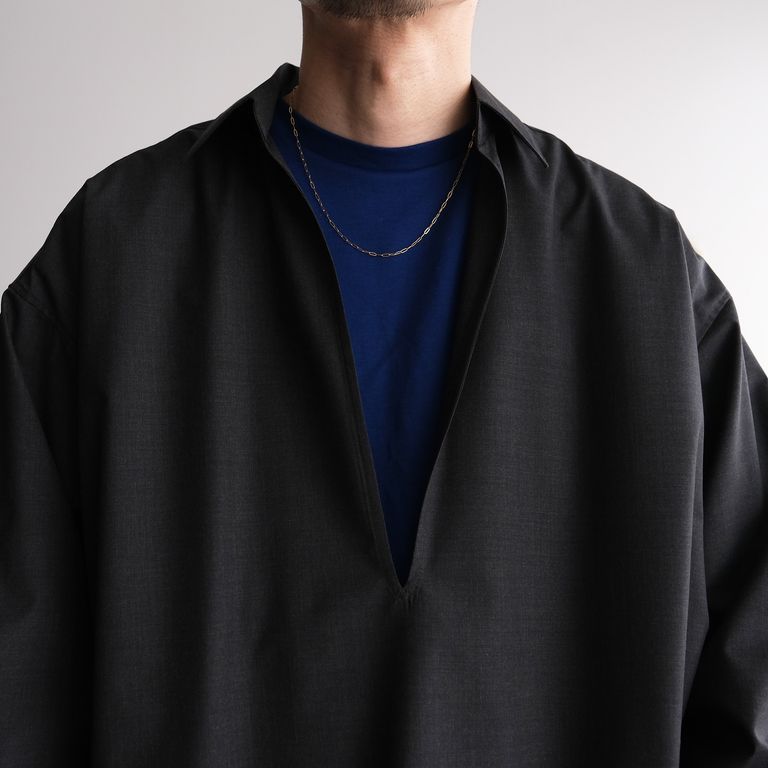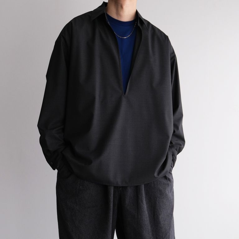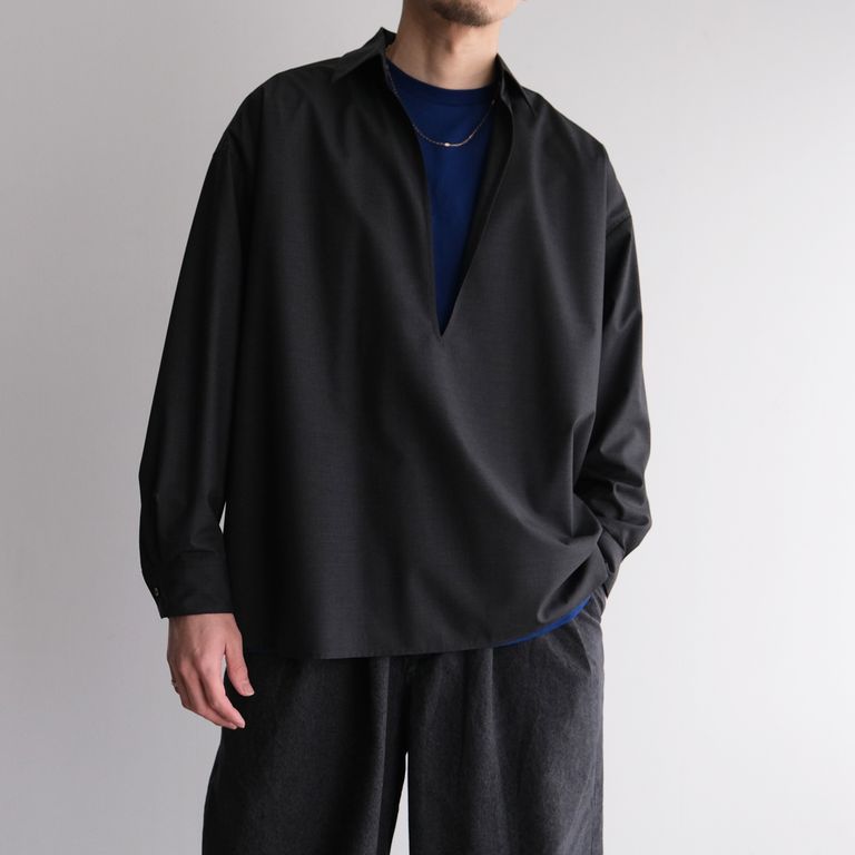 Fine Wool Heather L/S Skipper Shirt -シャツ-(Charcoal / チャコール)GU261-50320