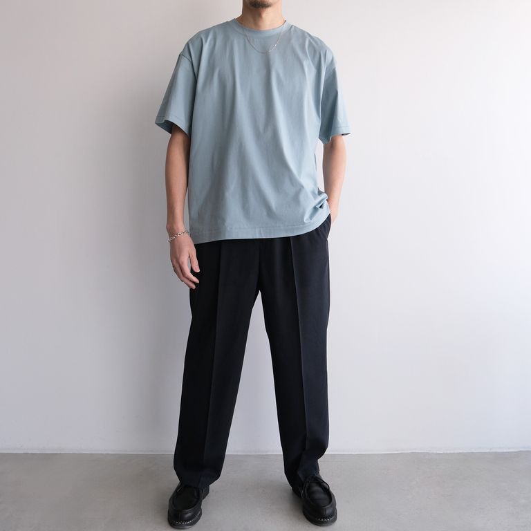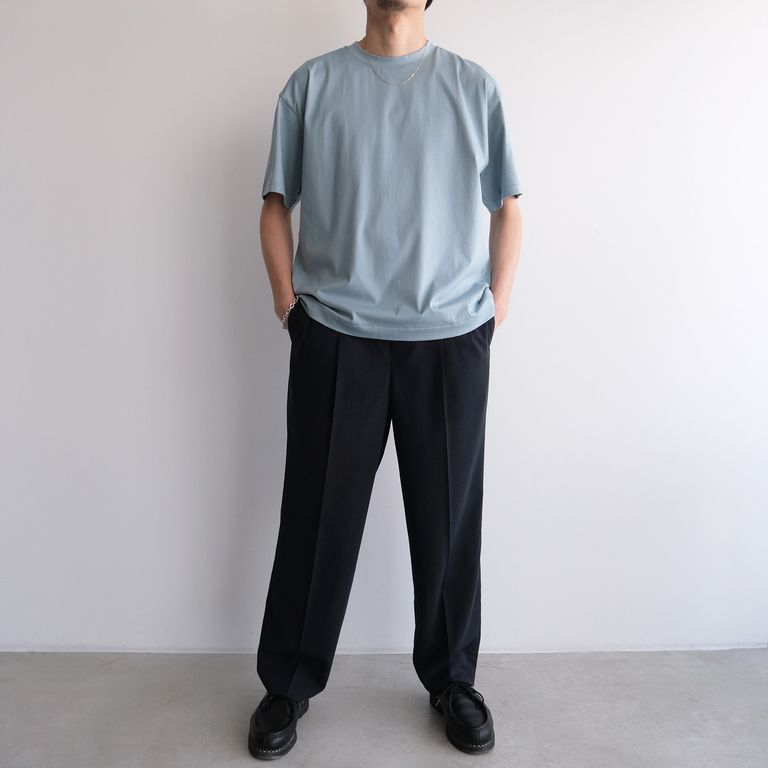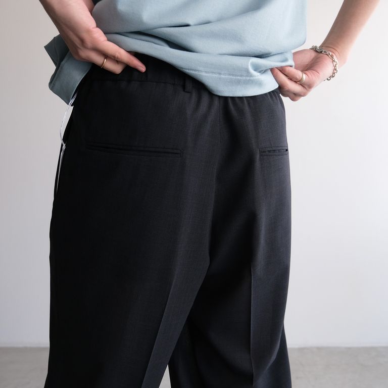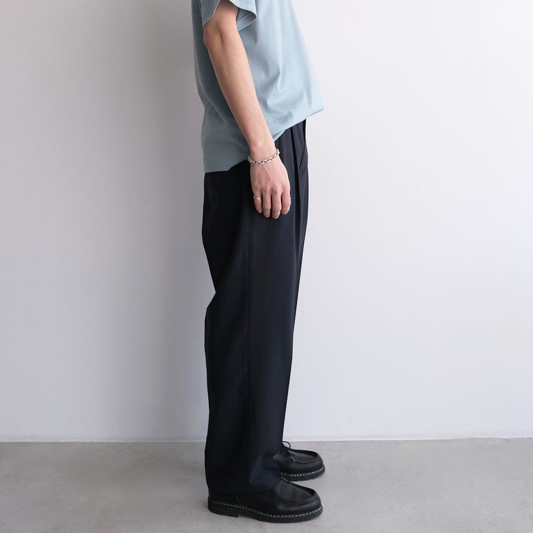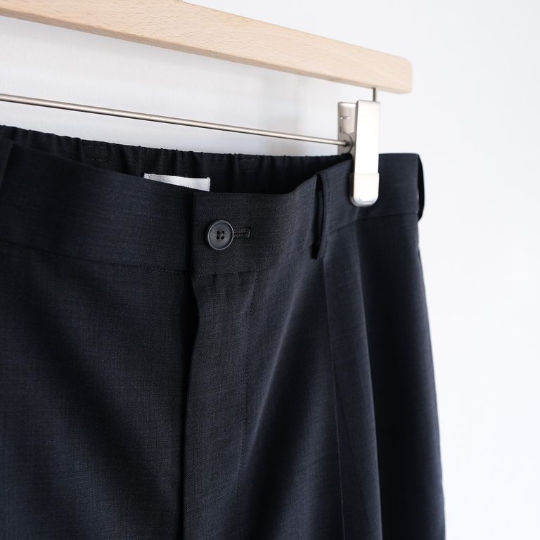 Twist Wool Gauze Two Tucked Easy Pants -スラックス-(Navy Top / ネイビートップ)