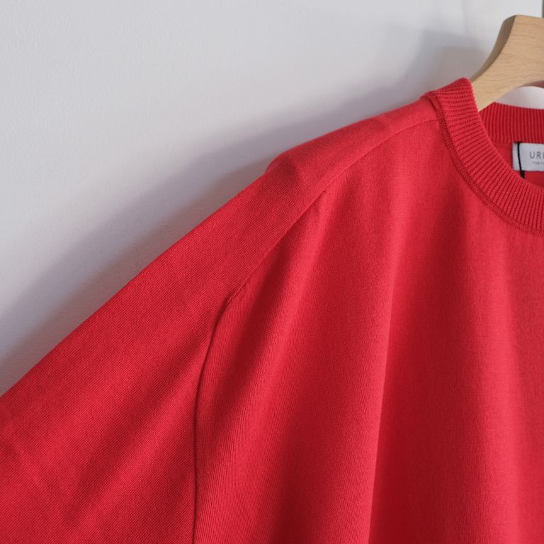 上質なコットン素材を使ってハイゲージで編み立てられたこちらの1着は、URUでコンスタントに展開するアイテム。カットソーの上に春の軽快なニットとしては勿論、夏に近づいていけばカットソーのような感覚で着ることができる便利な1着です。