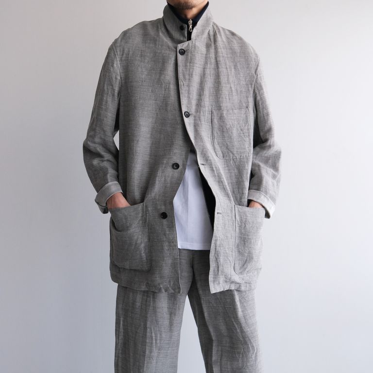 Linen Cupro Back Satin Work Jacket -ジャケット-(Gray / グレー)GM261-20370