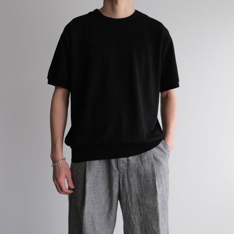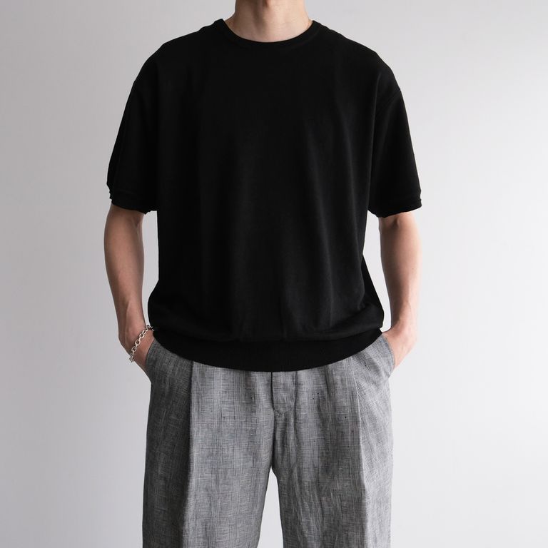 新入荷 rinoneca 2/26Safirin 18Gauge Knit Pullover -Tシャツ-(Black / ブラック) ¥39,600 税込 360 ポイント還元 発送目安日:1–2営業日 この商品は 送料無料 でお届けします 注文 サイズ(採寸)情報 質問する お気に入り コーディネートをリクエストする お電話でもご注文いただけます!お電話の際は 商品番号:179025094 をお知らせください。 電話をかける 0749-47-6585 サイズ 肩幅 袖丈 身幅 着丈 M 53 22 58 66 L 55 23 61 68 単位:cm 商品説明 本物のリネンを体感できる素晴らしい1着。歴史あるフランスの紡績会社『サフィラン社』が製造しているフレンチリネンを使用した1着。サフィランはフランス革命の前夜、ブルボン王朝末期の1778年、ベルギーとの国境にほど近いフランドル地方で創業され、世界最古のリネン紡績メーカー。多様なロットのフラックスを最適な割合でブレンドしていくノウハウ、均質な糸を安定して生産するテクニックー卓越した知見、技術を惜しみなく注ぎ込んで紡ぎだされるサフィランのリネン糸は単なる「フレンチリネン」とは根本的に違う歴史と品質とトレサビリティ。サフィランはリネンに求められるもの全てを備えた本物のリネン。そんな素晴らしい糸を使ってエップヤーン(有)が持つ技術『ゼロトルク 撚糸』で何度洗っても型崩れしない!斜行しない!といった他社では出ない特別な糸に仕上げています。仕上がった2/26番手の糸を通常では絶対に編むことが出来ない18ゲージの機械に入れて度目を詰め、しっかりした生地に仕上げた、糸から編みまでこの1着のために別注でセッティングして作成されています。シルエットは、ルーズになりすぎない適度なゆとりをもたせ、袖と裾にはデザイン性の効いたリブデザインをプラスすることで、ブラウジングすることで、丈のバランスを調節や着こなしに変化をつけることができます。リネンは呼吸をする素材。給水性にも優れており、水に強く、濡れることで強度が増します。そのため洗濯後生地が詰まりサイズが縮みます。1回目のお洗濯ではサイズが縮み硬さ(ちくちく感)が出ます。3回以上洗い着用を繰り返すと今度は生地にとろみが出てきて硬さ(ちくちく感)が無くなってきます。5回以上洗いと着用を繰り返すとさらにサイズも戻って来ますのでご安心ください。そのサイズの戻り方が自分の体系や運動量にあった戻り方をしますので、より自分の服に育っていきます。天然繊維の中でも群を抜いて丈夫な素材。他のどんなTシャツよりも長く着続けていただけます。長く着続けることで自分だけの味わいのある雰囲気を作り、デニムのように育てることができます。暑い暑い日本に夏には、リネンは丈夫なだけでなく、汗をかいても肌離れがよく乾きも早い特徴もあります。是非この夏選んでいただきたい1着です。 詳細情報 カラー Black / ブラック 素材 Linen / リネン 100% ブランド rinoneca 品番 RNC008 カテゴリ トップス > Tシャツ・カットソー 性別 ユニセックス 着用モデル情報 Men'sモデル身長182cm、体重68kg、着用サイズ:サイズ:L 返品 不可 ラッピング 可能 発送目安日 1–2営業日 配送方法 佐川急便(送料について) お支払い方法 本商品でご利用可能な決済方法は下記となります。各お支払い方法についての詳細はショッピングガイドをご覧ください クレジットカード 銀行振込 ※お振込の際の手数料はお客様負担となりますのでご了承くださいませ。※ご注文から金融機関の3営業日以内にご入金頂けない場合はキャンセルとさせていただく場合もございますのでご了承ください。お振込の期日がお客様の諸事情により遅れます場合はご連絡ください。※土日祝日にご入金手続きをされた場合は翌平日のご入金確認後の発送となります。 代金引換 配達時に現金で決済が可能な代金引換サービス。ご予約、お取り寄せでのご注文ではご利用いただけません。 あと払い (ペイディ) 翌月27日払い (コンビニ / 銀行) 事前登録不要、クレジットカード登録不要。 メールアドレスと携帯電話番号だけで、今すぐ購入可能。 お支払いは翌月27日までに、コンビニ払い・銀行振込・口座振替で。 1か月に何度購入しても、お支払いは翌月まとめて1回でOK。 さらに、ペイディアプリから本人確認をすると、分割手数料無料*の3回あと払い**、ご利用可能額の確認、使い過ぎを防止する予算設定など、便利な機能がご利用いただけます。 *口座振替・銀行振込のみ無料 **1回のご利用金額が3,000円以上の場合のみ利用可能 楽天ペイ サイズ(採寸)情報 サイズ 肩幅 袖丈 身幅 着丈 M 53 22 58 66 L 55 23 61 68 単位:cm このアイテムをシェア この商品について質問する